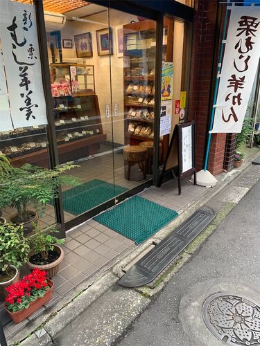 久しぶりの玉川屋です。 この看板が気になって入ってしまいました。 ずらっとラインナップ 今回、芋羊羹120円、栗蒸し羊羹160円、新米だし豆大福120円、栗の形をした上生菓子200円です。相変わらずリーズナブルな価格。 あ、豆大福がぶっ潰れてる!餡出てる…
